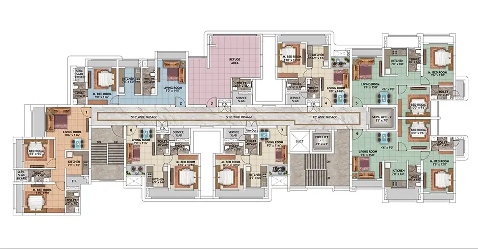A: Spacious 2 BHK residences ranging from 550 SqFt are available, featuring modern layouts designed for optimal ventilation and natural light.